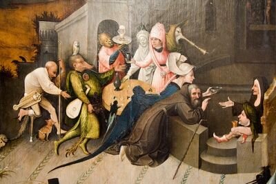 Одним из самых загадочных живописцев, повествующих своими произведениями о земных искушениях, был Босх, нидерландский мастер Северного Возрождения. Его полотно «Искушение Святого Антония» наполнено символами и зашифрованными знаками, а главной идеей картины становится тема противостояния вину. Обольщение вином у Босха плавно перетекает в Божественное проклятье.