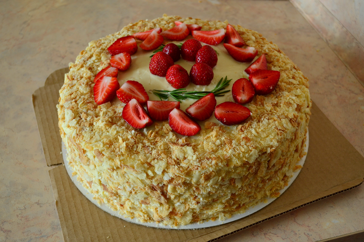 Любимый с детства «Наполеон» без выпечки!!! Этот десерт получается хрустящим, а его нежный крем будет таять во рту. Для приготовления нам понадобятся следующие ингредиенты: *Слоеное печенье "Ушки" - 800 г *Молоко - 1 л *Яйца - 4 шт *Масло сливочное - 150 г *Сахар - 0,5 ст. *Мука - 6 ст. л. *Ванильный сахар по вкусу Приступим к приготовлению: 1. Смешать яйца, сахар, муку и ванильный сахар. 2. Как следует размешать массу, добавить в нее молоко и поместить на огонь. 3. Варить крем, постоянно помешивая, пока он не загустеет. Когда крем немного остынет, добавить сливочное масло, перемешать. 4. Сбор тортика: обмакивать печенье в крем и выкладывать на блюдо. ВАЖНО: чем более щедро мазать печенье кремом, тем вкуснее будет. 5. Последний слой печенья смазать оставшимся кремом. 6. Присыпать крошкой из печенья. Наш торт готов! Приятного аппетита!!! ПОДПИШИСЬ на MIX Рецептов что бы не пропустить новенькие вкусные рецепты!