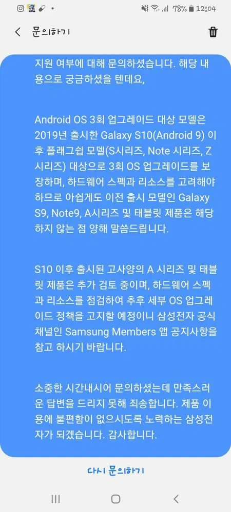 Представитель компании в Южной Корее, на запрос клиента о том, получит ли его Galaxy A90 3 года апдейтов, ответил, что трехлетняя программа может также применяться к некоторым