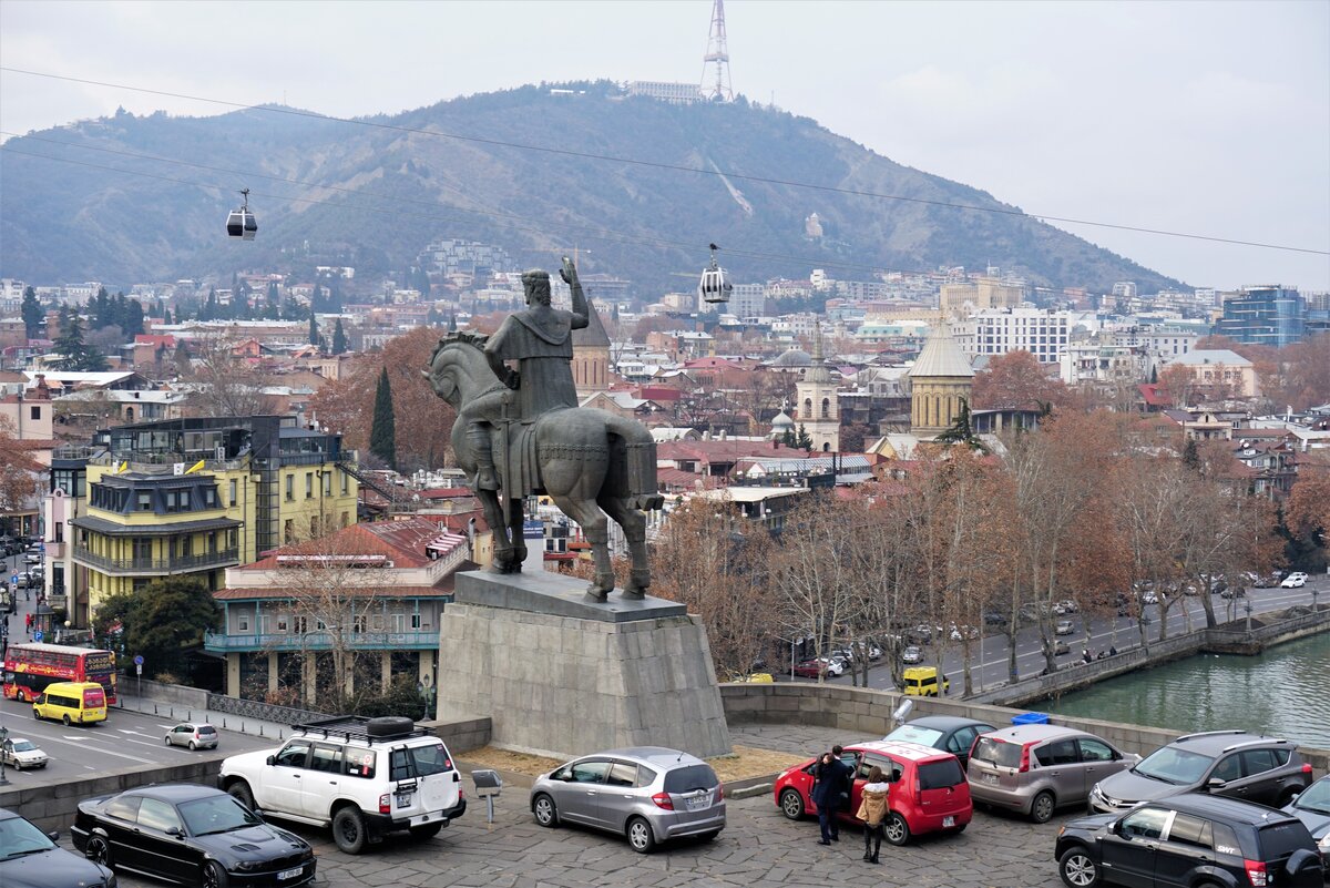 От храма на город взирает древний царь Иберии Вахтанг Горгасали: