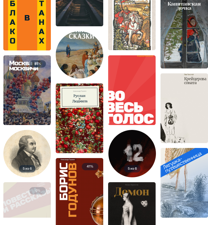 Удобно, что здесь сделаны подборки не только по темам или авторам, но и по настроению. Отмечено, что перечень авторов и произведений будут постоянно пополнять. Причем выбором произведений занимаются эксперты РГБ и привлеченные профессионалы в сфере литературы и искусства.