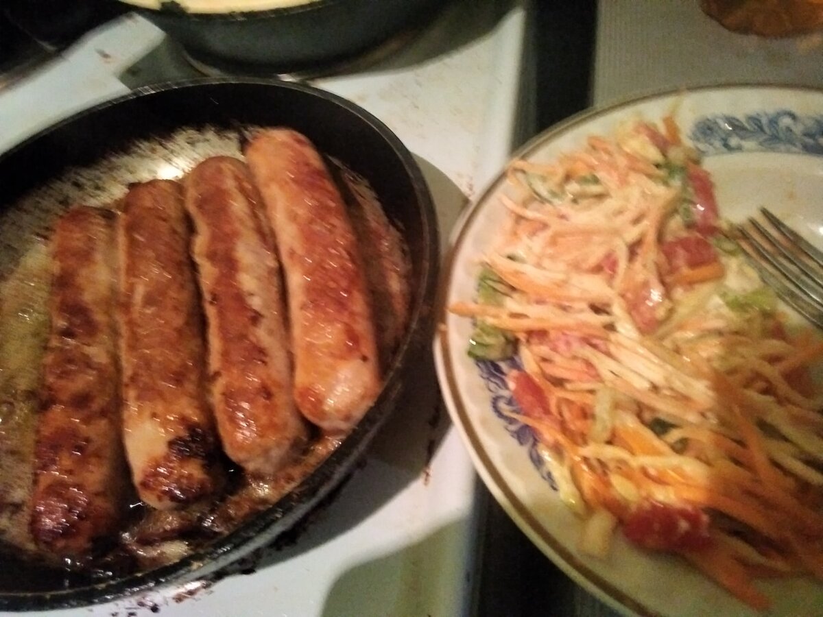 Итак мой голодный дружбан!!! Я взял : Купаты 98р охл - 400гр Морковка 10р - 100гр Маленькая капуска 15р - 400гр Перец болгарский и помидорка 30р Лаваш 19р *2шт = 40р Мазик яйцо 5 р и масло 20гр... (Набор сделай сам, инструкцию не приложу) Короче, лентяй Пока жаришь купаты буржуйские и плачешь о тщетности бытия, пореж овощи и смешай - заодно посолить слезами... Две сосисы отложи обжора!!! Завтра пожрешь, там ещё второй лаваш в калькуляции и овощей хватит и всего! Все эти купаты сочные и с приправами, так что сэкономили на этом и можем выкидывать все это на лаваш!!! Видал сколько мяса с двух купат? Столько мяса даже в твоей девушке нет! Потому что в ней больше жира, чем мяса))) Ну ты понял подкол да?)) Ну не будем о грустном, ты и так наверное жрать хочешь) Ну и как уж наши бутерброды с начинкой, без пары кусочков колбасы?))) Только сначало обжарь лаваш с начинкой! Теперь все куллл!) Если это романтический лёгкий завтрак, ебани сердечко как я на тарелку!!! Поднеси своей девушке ут