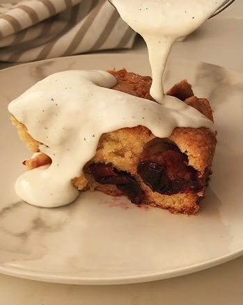 Готовому пирогу дай немного остыть и подавай с мороженым или ванильным соусом.
