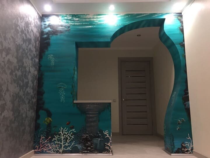 Дизайн арки, декор арки для аквариума, декоративная лепнина — г. Донецк, ул. Пролетарская, д. 85 — август 2020 года «Мастер в ДНР» — дизайн арки, устройство и декор арки для встроенного аквариума: декоративная лепнина, барельеф, аэрография, художественная роспись. Посетить страницу на сайте