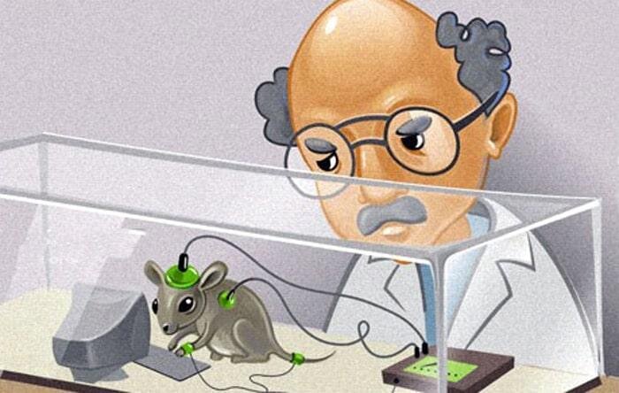 Все началось с того, когда Олдс и Милнер открыли центр удовольствия в мозге своей крысы, они решили доказать, что стимуляция этой области мозга вызывает эйфорию. Они сутки морили крысу голодом, а потом сажали ее в серединку короткого туннеля, с обоих концов которого стояли миски с едой. Обычно крыса бежала по одному из коридоров и принималась хрустеть. Но если ученые подавали крысе разряд прежде, чем она достигала еды, животное замирало на месте и не двигалось. Эти крысы нажимали на рычаг и игнорировали: пищу, воду, опасность, самку. Вот очередной крысе только что вживили в мозг электрод. Поместили в камеру. Исследователь сам нажал на педаль. Первая порция электрического удовольствия вoшла в маленький мозг. Как ведёт себя крыса? Начинает искать! Быстро, суетливо движется по углам камеры, всё обнюхивает и трогает лапами, пока наконец не находит того, что нужно, — педаль, райскую педаль!.. Теперь её не отгонишь!.. Ритмично, как заведённый автомат, один-два раза в секунду она посылает себ