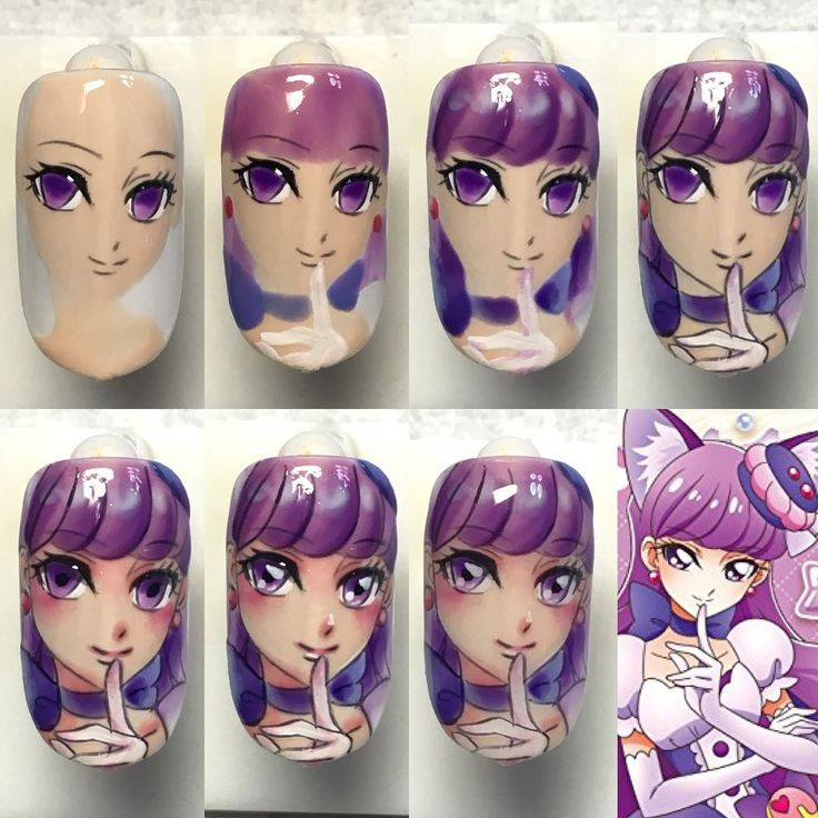 Достаточно креативно и забавно выглядит маникюр с аниме. Срисовывание персонажей из мультфильмов на ногти — главный маникюрный хит в Японии. Многим знакома культура самураев и гейш. Япония знаменита также своим нестандартным подходом ко всем сферам жизни. Японская анимация — отдельная культурная прослойка. Отличительная особенность её персонажей — большие глаза, которые детально прорабатываются и передают характер героя.Но не все могут повторить сюжет мультфильма. Для этого я приготовила для тебя пару пошаговых идей.