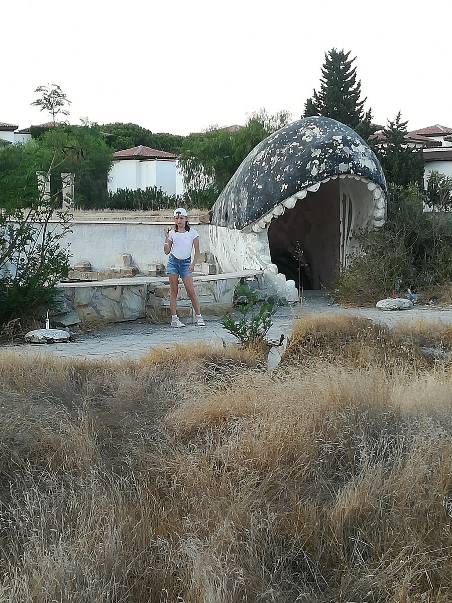 Начали мы свои приключения с нижней части, множество бассейнов, водяные горки. Спустились в открытую пасть то ли кашалота, то ли кита. Похоже там через стекла смотрели на рыбок и остальную плавающую живность. Зашли в здание. Разграбленные номера, куча битого стекла. Страшновато.