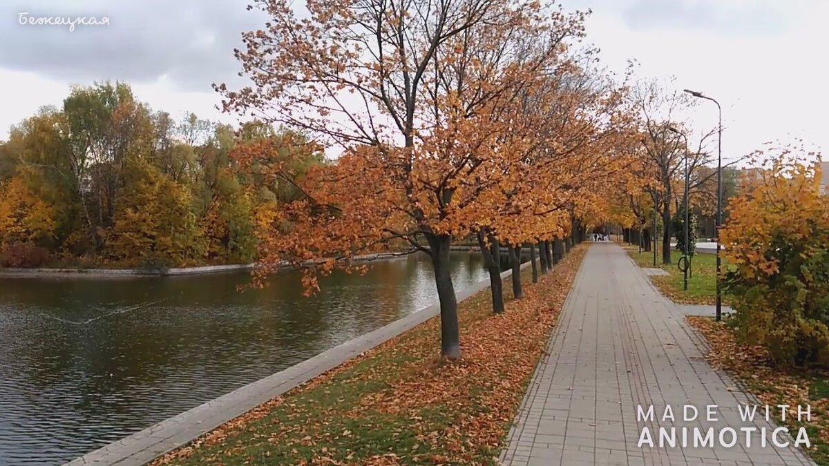 Осенний парк Дружбы на Севере Москвы, застелен красивым ковром из жёлтых и красных листьев.