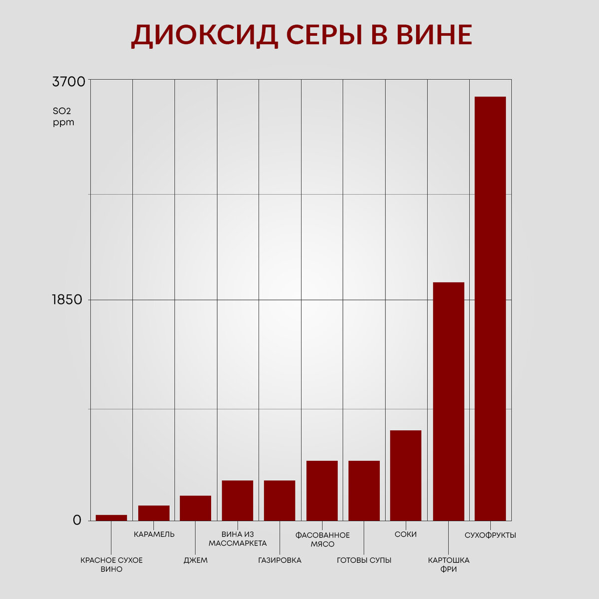 — кстати, в красных винах содержится в среднем меньше диоксида серы, чем в белых и уж тем более сладких винах. Так что если у вас голова от красного болит, а от белого нет, то дело точно не в сульфитах (об этом потом поговорим).