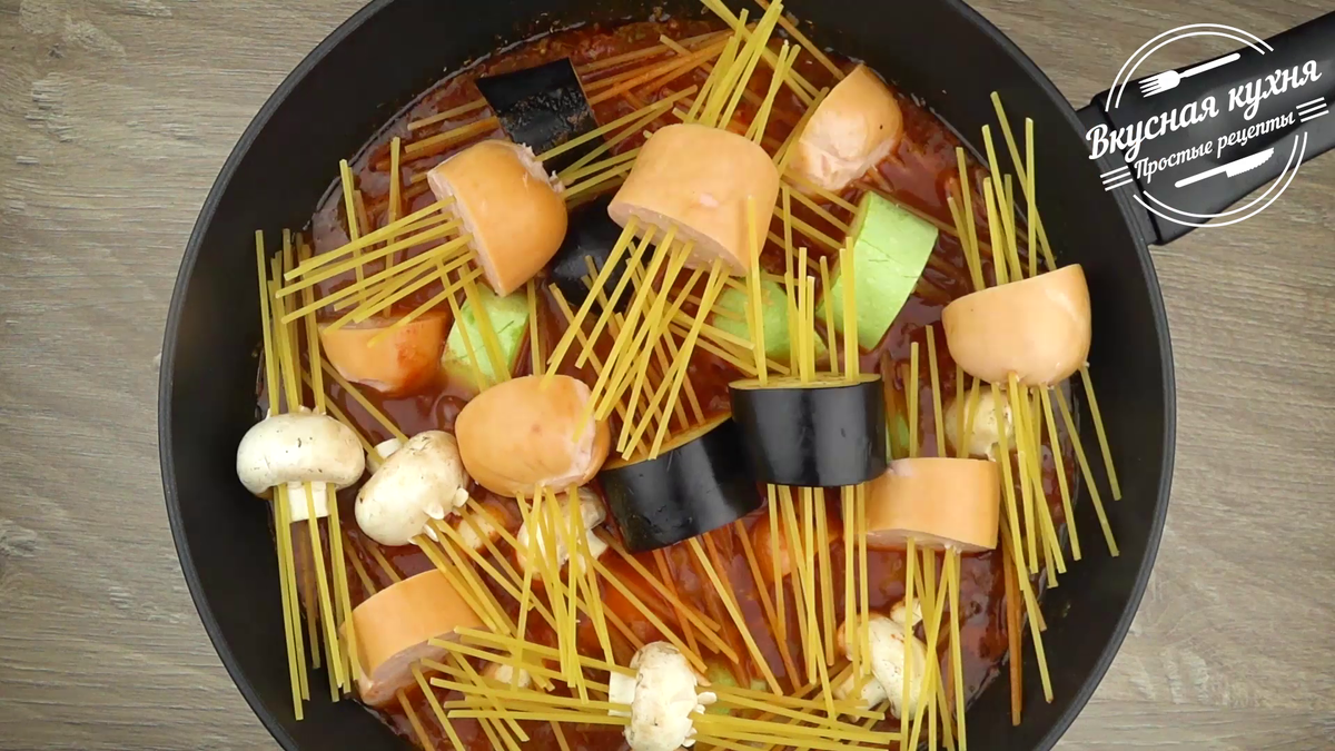 Идея быстрого ужина со спагетти возникла не случайно. Увидела на каком-то канале сардельки, проткнутые спагетти. Понравилось и решила поступить подобным образом не только с сардельками, но и с овощами. а готовила эту красоту не в обычной воде, а в соусе. Вот что из этого получилось.