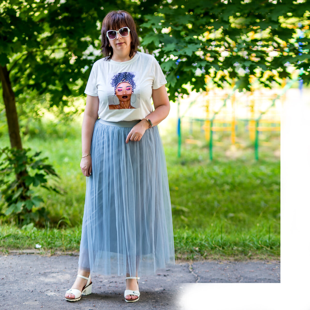 По верхнему слою слабо прослеживались складки, но конечно сохранить я их не смогла, когда гладила. Поэтому юбочка по итогу просто пышная, без крупного плиссе.