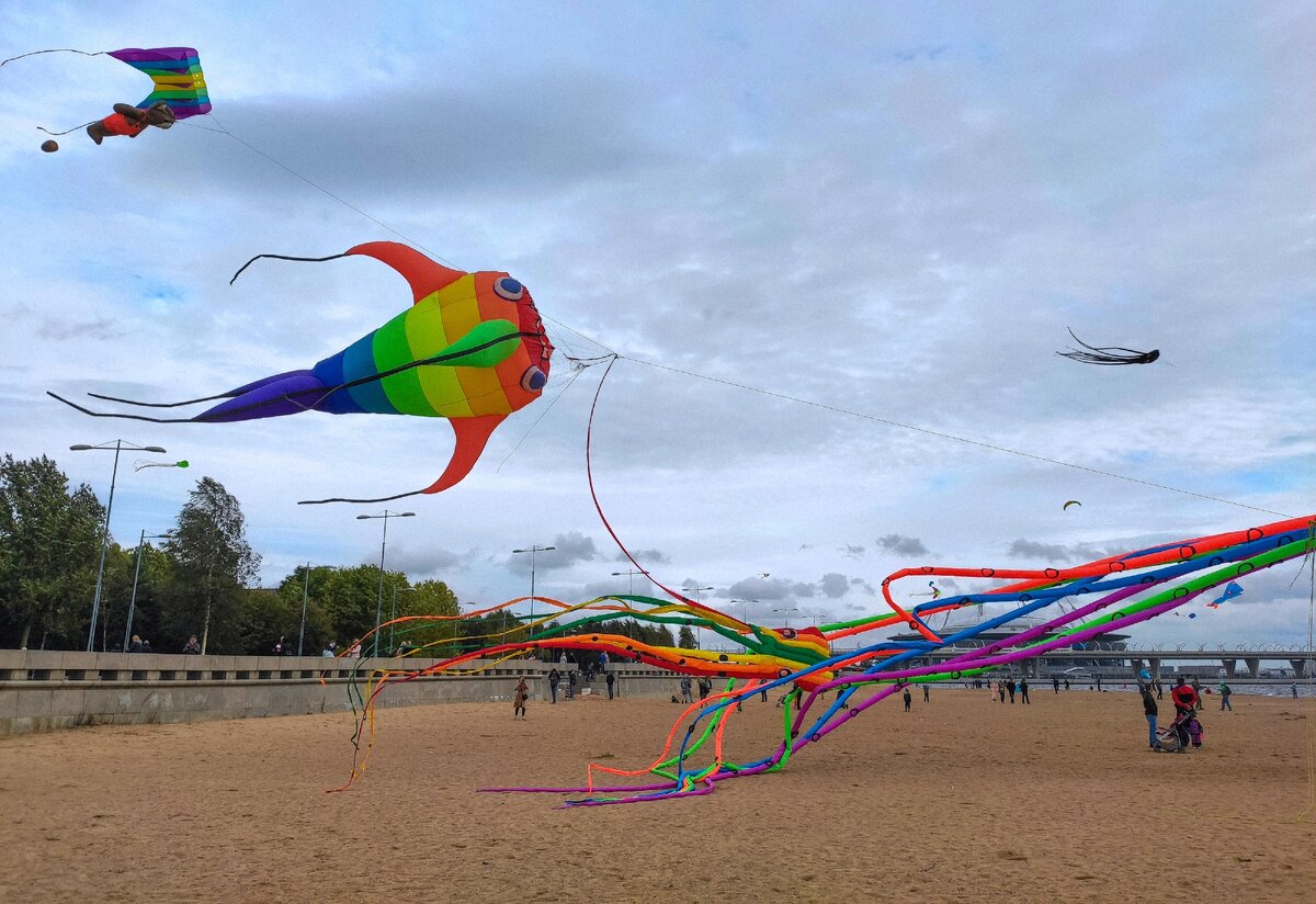 Последние несколько дней в Санкт-Петербурге штормовое предупреждение, но несмотря на это сегодня 12 сентября на берегу Финского залива провели фестиваль воздушных змеев. В парке 300-летия