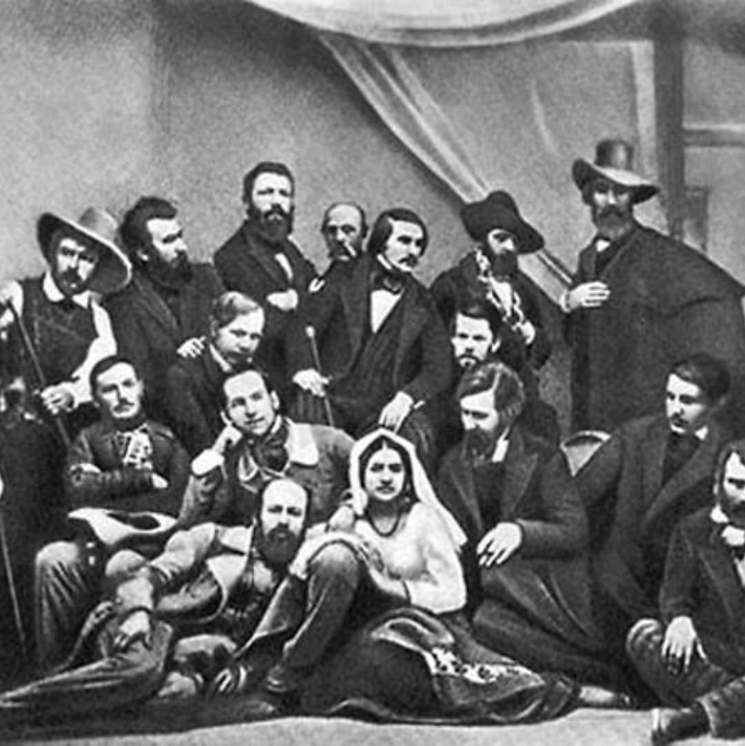 Снимок был сделан в 1845 году в Риме придворным фотографом Сергеем Левицким (он, кстати, приходился двоюродным братом А.Герцену). В столицу Италии фотограф был отправлен, чтобы сделать подарок вице-президенту российской Академии художеств графу Федору Толстому от его бывших подопечных - русских художников, проживавших в Италии.