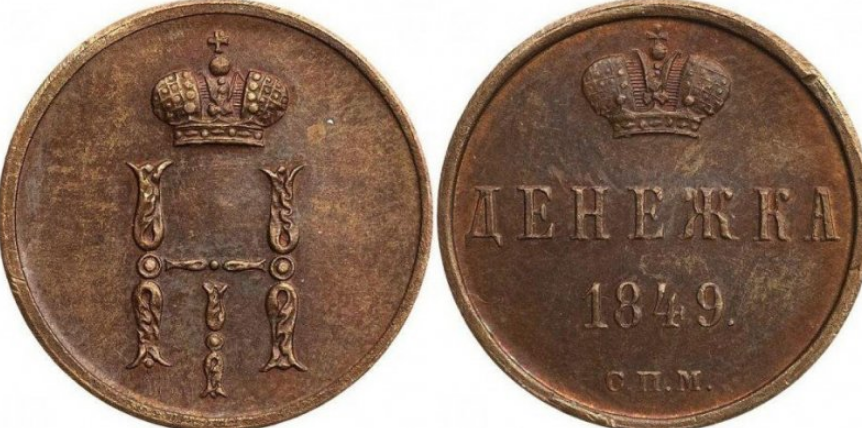 В 1849 году монетная стопа становится 32-рублёвой (из пуда чистой меди чеканится монет на сумму 32 рубля). Четверти копейки возвращают её прежнее имя – полушка. Казалось бы, вернётся и деньга. Но нет, на этот раз она зовётся более нежно и длинно – «денежка». Пробную чеканку новой медной линейки производят в столице. Доказательство этому – буквы «С.П.М.» («Санкт-Петербургская монета») на реверсе.