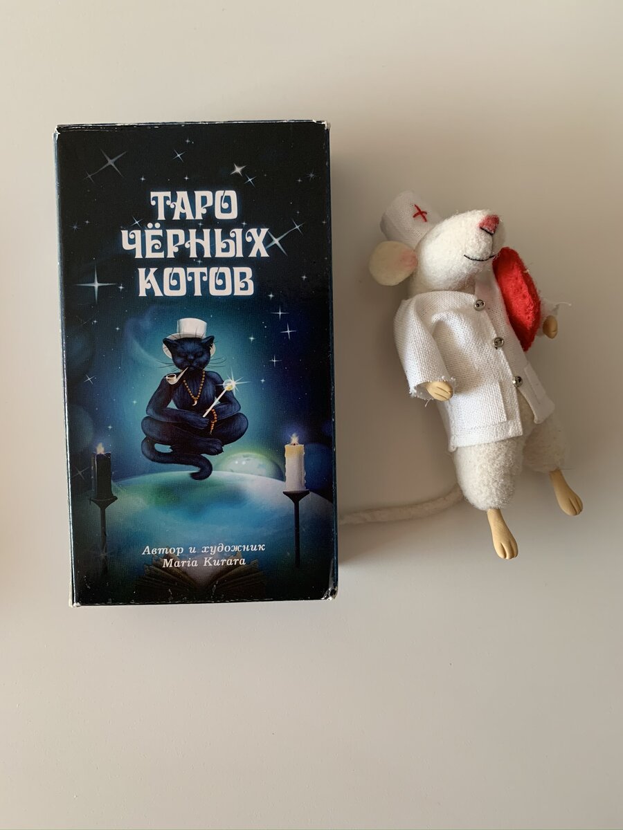 Здравствуйте! Продолжаю рассказывать про свою коллекцию колод. Ссылки на другие обзоры оставлю в конце публикации. Ответила на некоторые вопросы насчет гаданий в этой статье. Сегодня расскажу про одну из самых популярных колод. Черные котики, ну разве можно остаться равнодушными? Колода оригинальная и стоила на момент покупки чуть меньше 2000 рублей. Издательство Авалон. В коробке была сама колода запечатанная в слюду и книжечка с описанием карт. Я не пользуюсь, поэтому успешно ее потеряла почти сразу. Карты из достаточно плотного картона, но не ламинированные. Это забавно, но они пахнут для меня горьким шоколадом и аромат за 10 месяцев совершенно точно не стал тише. Рубашка ненавязчивая, но она манкая. Так и хочется скорее перевернуть карту и узнать: а что там?. К сожалению качество не самое лучшее. Я гадаю на "черных котах" не слишком часто, но они уже облупились, причем знатно. Картинки фантастически красивые. Они очень душевные. Эмоции от этих карт максимально положительные. Но он
