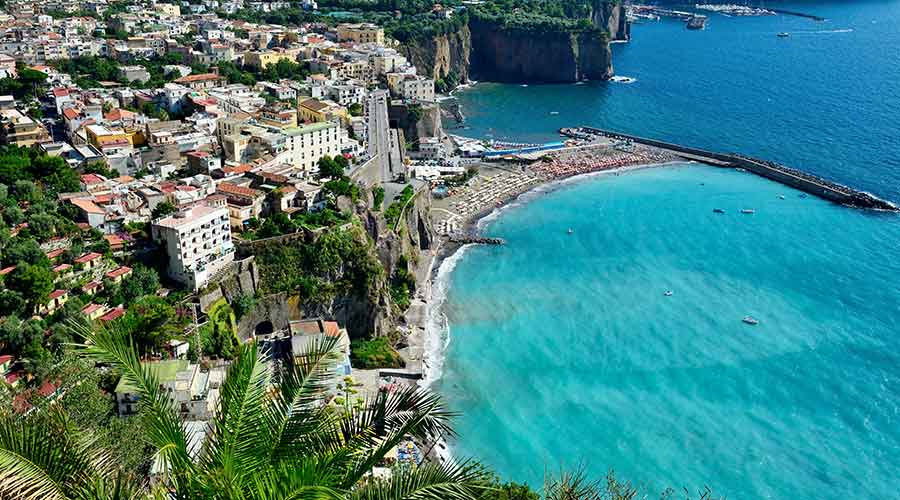 Пляжи Сорренто: лучшие места для отдыха в городе и окрестностях. Пляжи Сорренто — это целое испытание для изнеженного путешественника, привыкшего к пологому входу в воду. Здесь Вы этого не найдете. Сорренто — город на скалах, и вниз ведут многочисленные лестницы, с не всегда удобными ступенями. Поэтому для неподготовленного путешественника спуск к пляжу не будет слишком легким. Зато, в процессе прогулки, его взгляду предстанут восхитительные панорамы маленького заливчика, в котором расположен город. Сорренто находится в левой части бухты, и поэтому перед вашим взглядом откроется вся ее правая часть. Там, где расположены Мета и Монтекьяро, а также горы Латтари. А совсем вдали можно различить почти сливающийся по цвету с морем далекий Везувий. Иными словами, Вы никогда не пожалеете, что выбрали именно пляжи Сорренто. Ведь здесь Вас ждут незабываемые красоты скалистого Амальфитанского побережья. Пляжи Сорренто, в основном, принадлежат отелям первой линии, но иногда рядом с платными пляжа