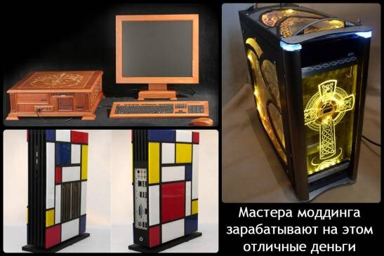 Профессионалы делают очень красивые компьютеры, которые можно показывать в музеях и собирать за это неплохие деньги. Каждое их произведение является шедевром и стоит немалых денег. К примеру, полностью обшить все детали компьютера деревом довольно тяжело, а если при этом нужно еще нанести некоторые рисунки, то цена становится не многим меньше, чем новый компьютер. Но результат того стоит.