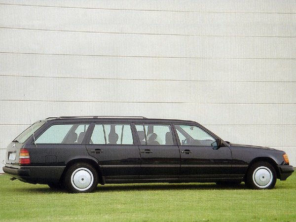 В начале 1990-х уже сама компания Mercedes-Benz заметила на дорогах S124 с предыдущей фотографии и решили подготовить ответ. 260 E Limousine был седаном и не имел большого багажника, но теперь в салоне могло поместиться восемь человек! Владельцы такого "отеля" на колесах были в восторге.