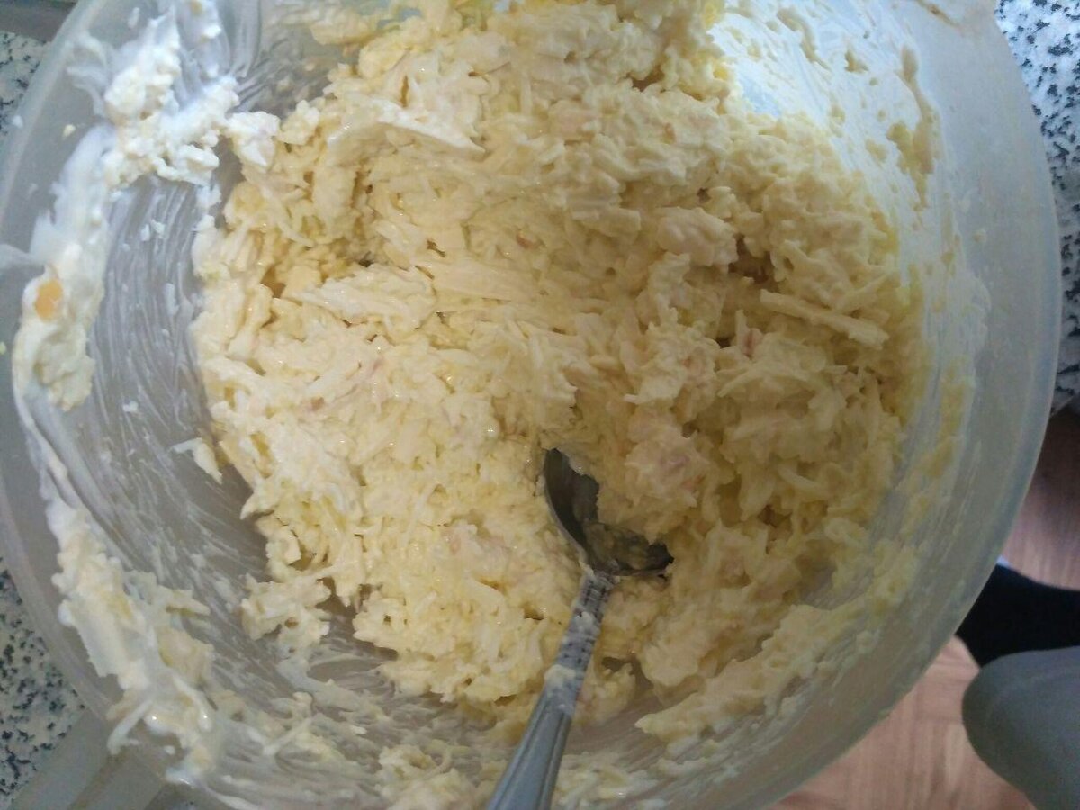 Всем, кто любит посмотреть фильмы, сериалы, да и просто любителям закусить представляю рецепт бюджетной и очень вкусной закуски. Что нам понадобиться: 6 яиц; копчёный сыр; чеснок (по вкусу); майонез. Начинаем готовить Варим яйца и даем им остыть. После чего очищаем. Трем сыр на крупной терке, следом очищенные яйца, но уже на более мелкой. Так будет лучше. Добавляем майонез и чесночка. Вот собственно и все. Дешево и сердито. Вышло где-то около 500 – 700 грамм. Приятного аппетита!