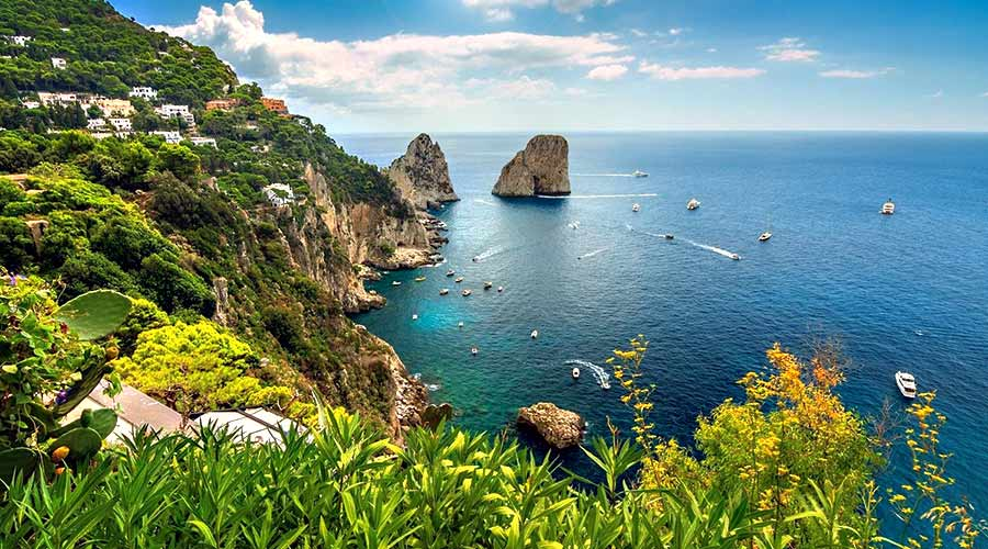 Остров Капри это курорт в южной части Неаполитанского залива, основной породой которого являются известняки. За свою многовековую историю кому он только не принадлежал: и грекам, и финикийцам, и Неаполитанскому королевству, и римским императорам, туркам, французам и англичанам… Октавиан Август так хотел обладать этим островом, что обменял его у неаполитанцев на Искью. Название острова происходит от латинского «caprae», что означает «коза». Еще Гомер упоминал этот прекрасный остров в своей «Одиссее», здесь, по его мнению, обитали небезызвестные сирены, дурившие головы морякам. Капри — крошечный остров, площадью всего 10 кв.км. Здесь всего два административных центра — Капри и Анакапри, которые соединяет между собой горная автомобильная дорога. Есть и пеший маршрут — это знаменитая Финикийская лестница. Протяженностью 1,7 км она имеет 921 ступеньку и является отличным местом для прогулок. Все ступеньки были вырезаны в скале еще финикийцами, которым принадлежал остров до нашей эры, хотя историки утверждают, что дорога была построена греками.