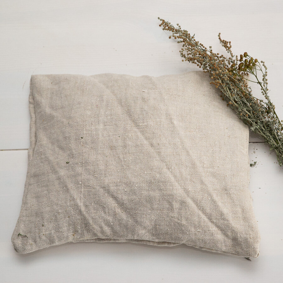 В качестве материала для нашей аромаподушки мы выбрали лен - это натуральный, прочный и гипоаллергенный материал. Ткань должна быть достаточно плотная и без дырок, чтобы травы не высыпалась.
