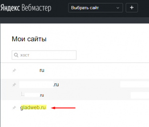 Шаг 1. Заходим в Яндекс Вебмастер и выбираем тот сайт, по которому хотим задать вопрос: