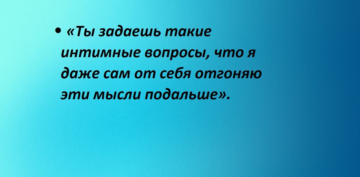 · «Ты задаешь такие интимные вопросы, что я даже сам от себя отгоняю эти мысли подальше».