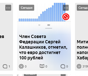 Неудобную для кого-то статью про предполагаемый курс евро в 100 рублей на моем канале сразу же заблокировали. То ли алгоритм опять так настроен на ту информацию, которую по каким-то причинам показывать нельзя, то ли есть ручная обработка и какие-то там правила - не знаю. Написал в поддержку уточнить. ВА может просто в джень выборов нельзя такую неудобную для партии власти информацию публиковать? Ох не знаю не знаю. Вот так выглядит блокировка Самое интересное другое - это третья статья, которую блокируют на моем канале за 2 недели. Похоже, включился какой-то новый принцип цензуры или не знаю. Первой заблокировали мою статью про введение платных парковок возле больниц. Второй была блокировка статья об оппозиции в Беларуси И вот она третья. Но заметьте, я высказывал даже не свое мнение, а лишь , по сути, процитировал уважаемого человека - ни много ни мало, а члена Совета Федерации. Да, вот я связываю все блокировки неудобных для власти статей как раз с днями выборов. До этого таких п