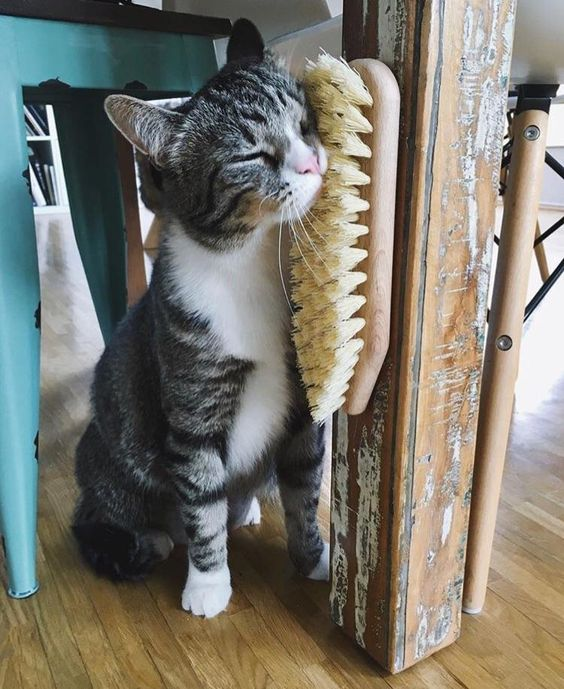 Котики любят, когда им чешут за ушком. А что делать коту, когда вас дома нет? Отличную чесалку можно сделать из обычной щетки для одежды, которую прибиваете на любую деревянную поверхность.