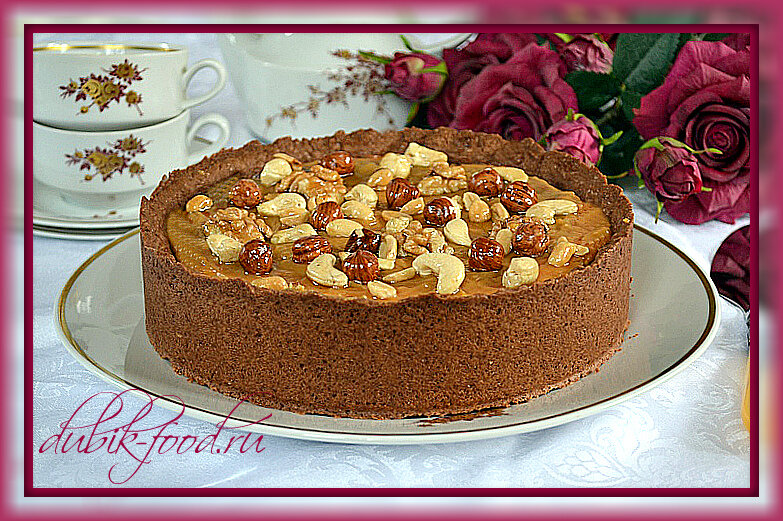 Остывший творожник покрыть вареным сгущенным молоком и украсить орехами с медом.