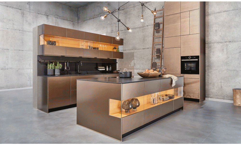 Главная фишка — полированный бетон. Он выглядит оригинально, не требует кропотливого ухода и обладает высокими прочностными характеристиками. Столешницы из полированного бетона уже потеснили гранит и его синтетические аналоги.