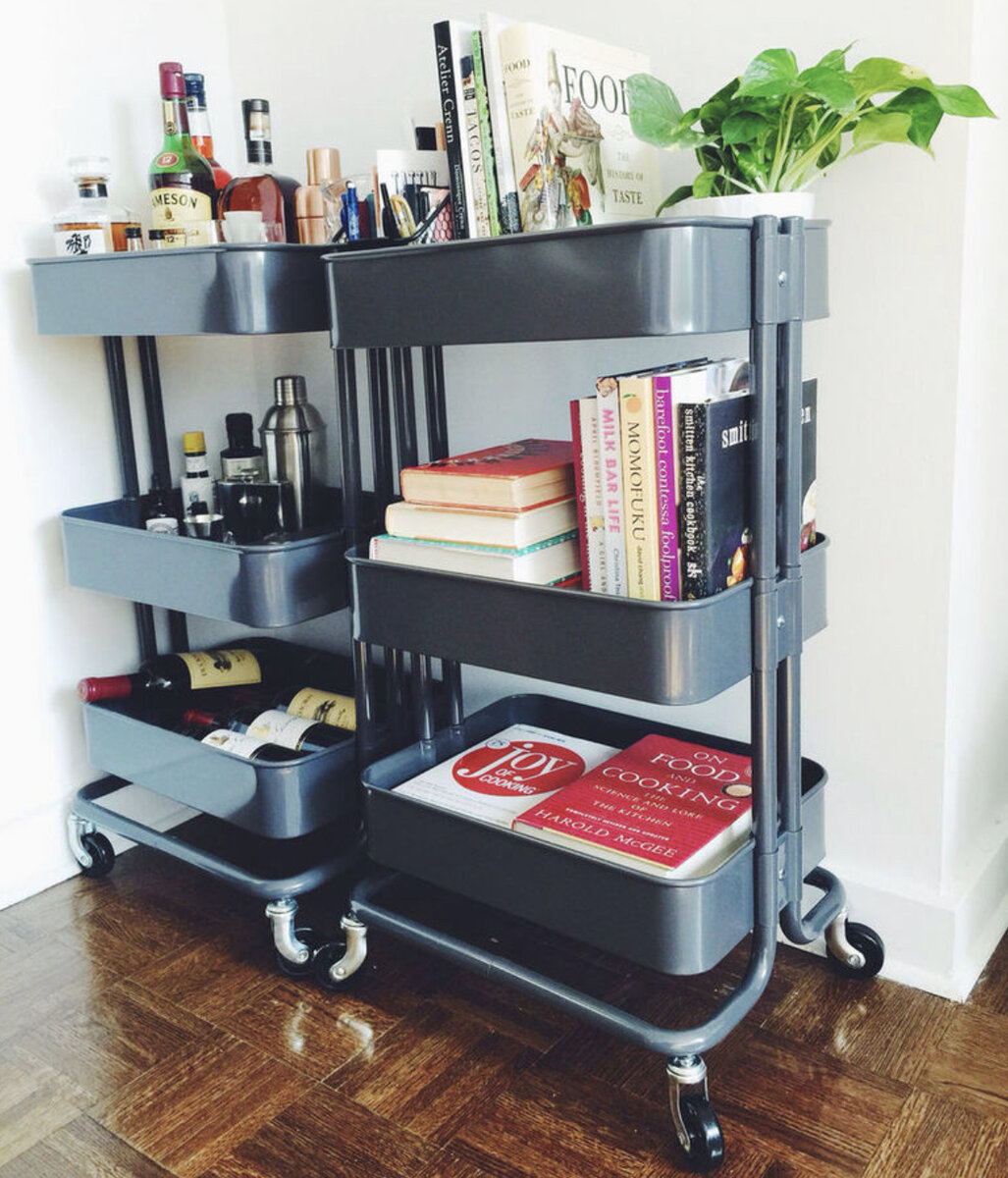 Этажерка Роскуг Эта компактная и лаконичная тележка вмещает невероятное количество вещей благодаря глубоким полкам. К тому же этажерка легко передвигается: можно на время поставить ее на кухню, в коридор или в ванную. В любой из этих комнат тележке найдется применение — в нее можно положить разные мелочи типа кухонной утвари и канцелярских принадлежностей или сделать ее частью интерьера, к примеру, подставкой для комнатных растений. Стремянка Бэквем В городской квартире высокая строительная стремянка — лишняя, обычно она нужна только на время ремонта. А для повседневных нужд прекрасно подойдет мини-версия от IKEA. Стремянку Бэквем можно использовать не только для того, чтобы доставать вещи с верхней полки, но и для дополнительного сиденья, кофейного столика или подставки для цветов. Модуль для хранения Скубб Подвесной модуль для хранения одежды — идеальное решение для поддержания порядка в шкафу. Тканевый контейнер на липучке удобно закреплять и перемещать. Вещи, компактно сложенные