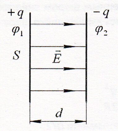 Для школьников. Когда говорят фразу "воздушный конденсатор", то имеют ввиду, что пространство между его обкладками заполнено воздухом, диэлектрическая проницаемость которого принята равной единице. Если же это пространство заполнить стеклом, с диэлектрической проницаемостью равной пяти, то стекло уменьшит напряжённость поля в 5 раз, увеличив этим в 5 раз ёмкость конденсатора. Иначе, в присутствии стекла конденсатор при том же напряжении между обкладками накопит в 5 раз больший заряд и, значит, сможет отдать в электрическую цепь в 5 раз больший заряд при разрядке. О возможности диэлектрика ослаблять внутри себя электрическое поле см. Занятие 51. Задача. Пояснение. Вывод формулы для нахождения напряжённости электрического поля, создаваемого заряженной плоскостью (в нашем случае электрическое поле создаётся одной обкладкой конденсатора в месте нахождения второй обкладки) дан в Занятии 48. Учтём, что заряд обкладки поделённый на её площадь даёт плотность заряда на обкладке. К.В. Ру