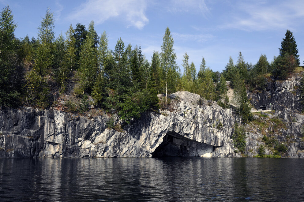 Одна из главных карельских достопримечательностей, - Рускеальский мраморный карьер, в тихой темной изумрудной воде которого отражаются отвесные мраморные берега.