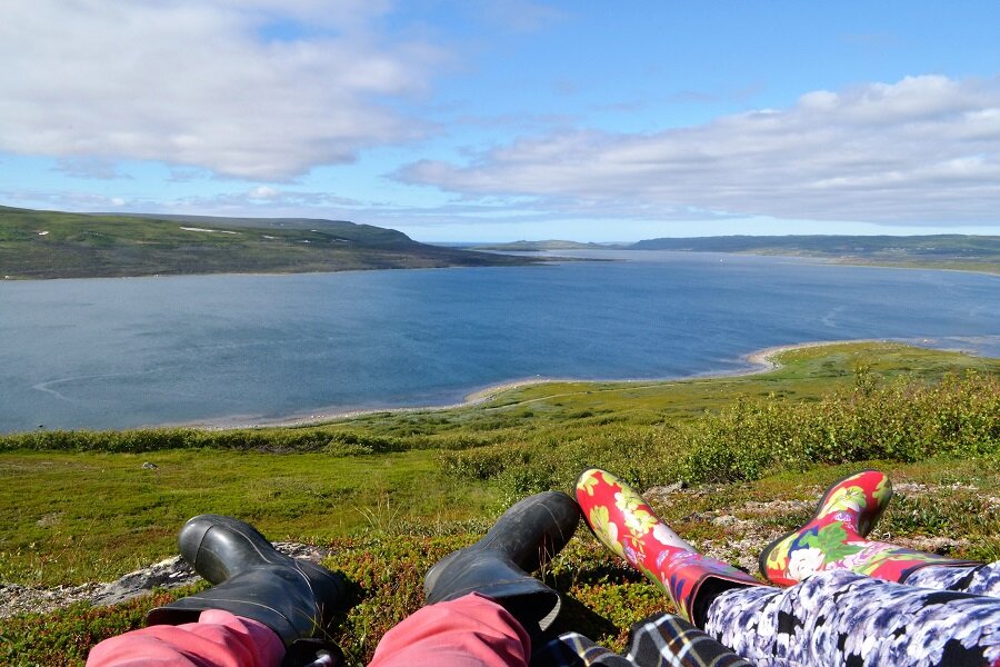 Здесь, наверху мы впервые за почти 2 недели путешествия по Северу, наконец, наткнулись на зрелую чернику. И впервые в жизни вживую увидели, как растет брусника. А вот морошка по-прежнему незрелая. Можно только догадываться, какое здесь изобилие в период массового созревания дикороссов!