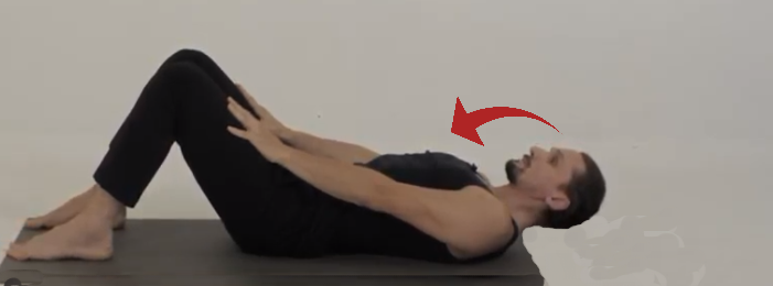 Лежа в исходном положении, подтягивать подбородок к груди и возвращаться в исходное положение. Повторить 20 раз, затем вернуться в положение для расслабления и полностью расслабиться. Выполнить три подхода.