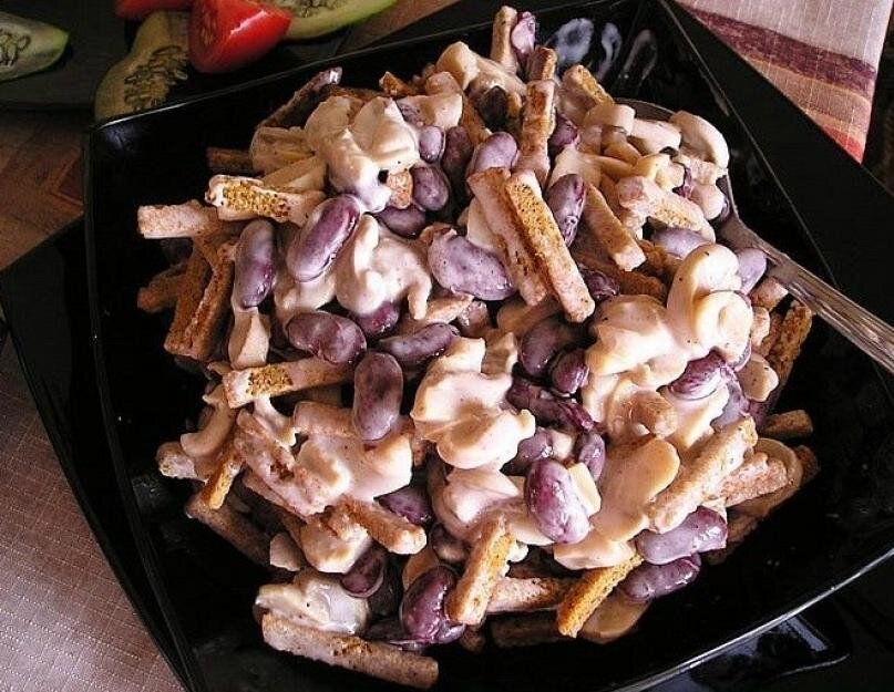 Консервированная фасоль (только не в томатном соусе) - 1 банка Копченая курица - 200 гр Сыр - 150 гр Небольшая луковица Сухарики - 1 уп Майонез Фасоль выкладываем в салатник. Курицу и сыр режем кубиками. Мелко нарезаем лук. Добавляем майонез и сухарики. Все хорошенько перемешиваем,салат готов) Приятного аппетита) Салат с фасолью и копченой курицей Фасоль выкладываем в салатник. Курицу и сыр режем кубиками. Мелко нарезаем лук. Фасоль выкладываем в салатник.. . ,салат готов) Добавляем майонез и сухарики. . ,салат готов) Приятного аппетита)
