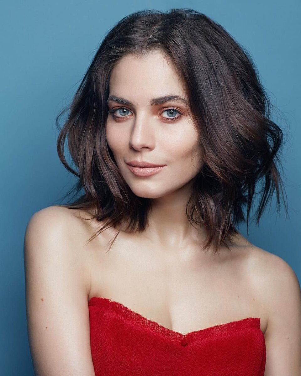 Но несмотря на большую любовь Юлии к темным краскам, ее темные волосы замечательно котрастируют с образами в пастельной цветовой гамме. Так белые брюки с завышенной талией и нежно-розовая рубашка подчеркнули элегантную красоту девушки. Зимой рубашку с коротким рукавом можно адаптировать и носить ее поверх водолазки.