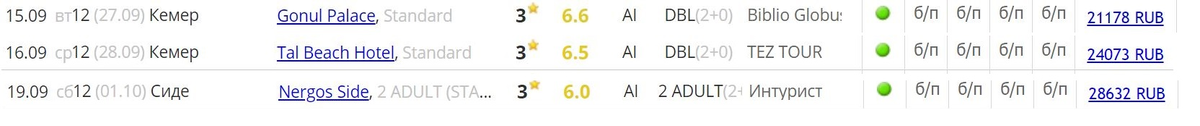 Мне в комментариях скинули цены на турецкие отели 3*.