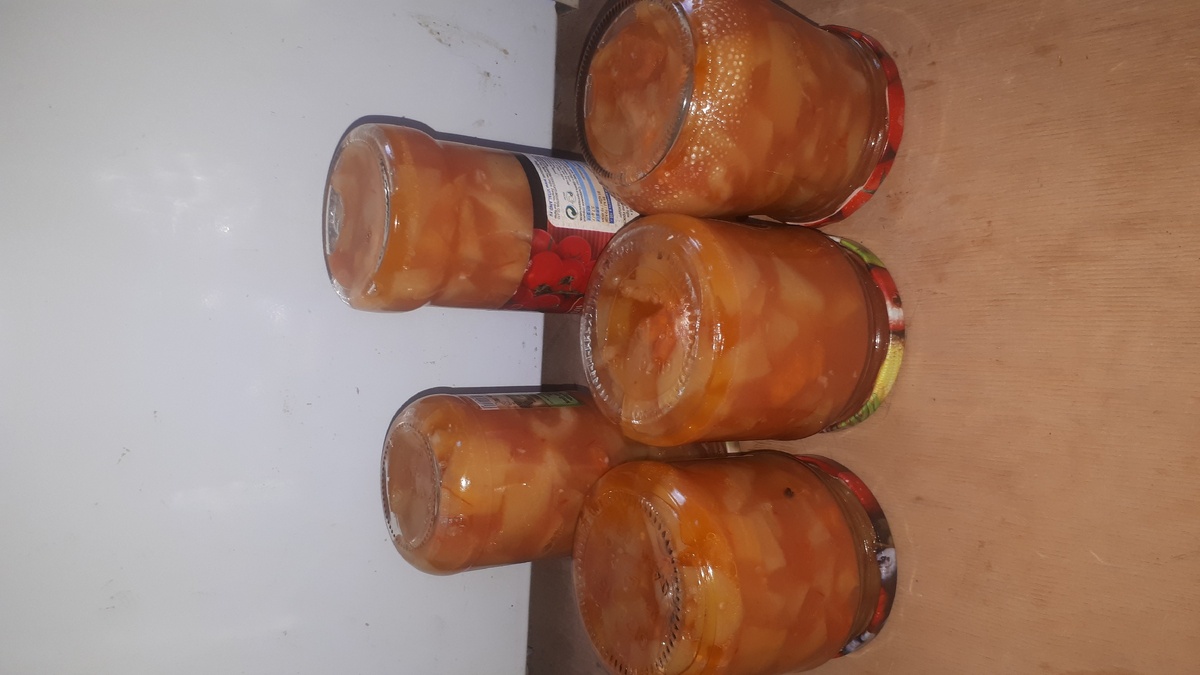 Перец -3 кг Помидоры - 3кг Растительное масло - 0,5 стакана Сахар -1 стакан Соль - 50гр Чеснок - 3 головки Нарезать помидоры на четвертинки и блендером измельчить до томатного сока. Закипятить томатный сок, положить нарезанный на кусочки перец, растительное масло, сахар, соль и кипятить 10 мин, за 2-3 минуты до окончания варки мелко нарубленный чеснок, закатать в стерилизованные банки. Поставить на крышки, закутать в одеяло до полного остывания.