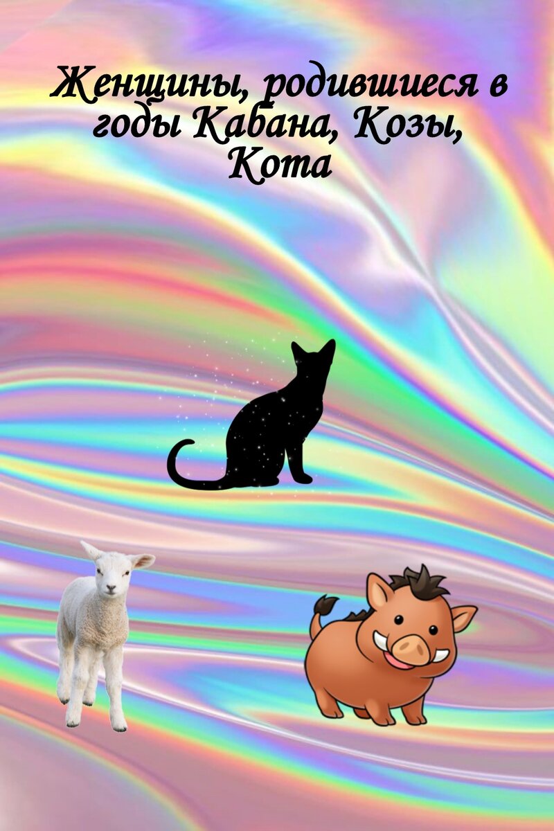 Женщины, родившиеся в годы Кабана, Кота, Козы. Может быть, это самые загадочные женские знаки. Внешнее спокойствие и невозмутимость скрывают мистическое мышление, колдовскую силу и власть над мужчинами. Может быть, нигде раздвоенность женщины не проявляется с такой неожиданной и обескураживающей силой. Эти женщины обладают достаточно трезвым взглядом на жизнь, но когда приходит время действовать, тут - то и проявляется их специфика:они больше доверяют сноведениям, знамениям, чем реальности. Да и реальная жизнь их занимает больше в своих крайних проявлениях, чем в спокойном течении. Эти знаки единственные, которые являются источниками воли, но источниками любви не являются. Любовь и воля всегда борятся в человеке, связывая друг друга этим противостоянием. А здесь одна воля и поэтому человек свободен, абсолютно свободен. Так же как и Крыса, Обезьяна, Дракон, эти три сексуальных женских знака, только теперь красота, спокойствие, созерцание переходит в образ, а мышление становится ми
