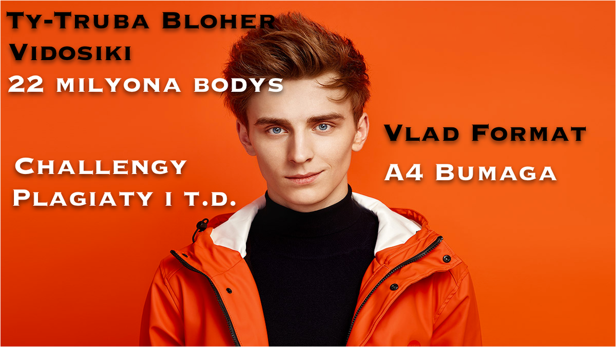 Итак, личность широко известная в несовершеннолетних кругах, углах и плоскостях, обладатель нетрадиционной, ориентированной на вижжащих ютюберш, внешности – представитель не столь дальнего, сколь дружественного зарубежья, да что там скрывать, просто Патриот, скрывающийся от ВоенКома – Мистер Владислав Андреевич… Э-ээ.. что-то у нас в туалете закончилась.. А! Бумага. Просим любить и жаловать на собственный страх и риск - известный видэо-блоХер Влад А4! С аудиторией более 20 миллионов одурманенных подписчиков на всеядном Ютубе. Между прочим, 20 мильенов – это больше, чем, к примеру, подписчиков у Юрия Александровича Дудя и – не в суе буде упомянут - Ивана Андреевича Урганта на том же Ютубе, вместе взятых! Практически два раза подряд!!