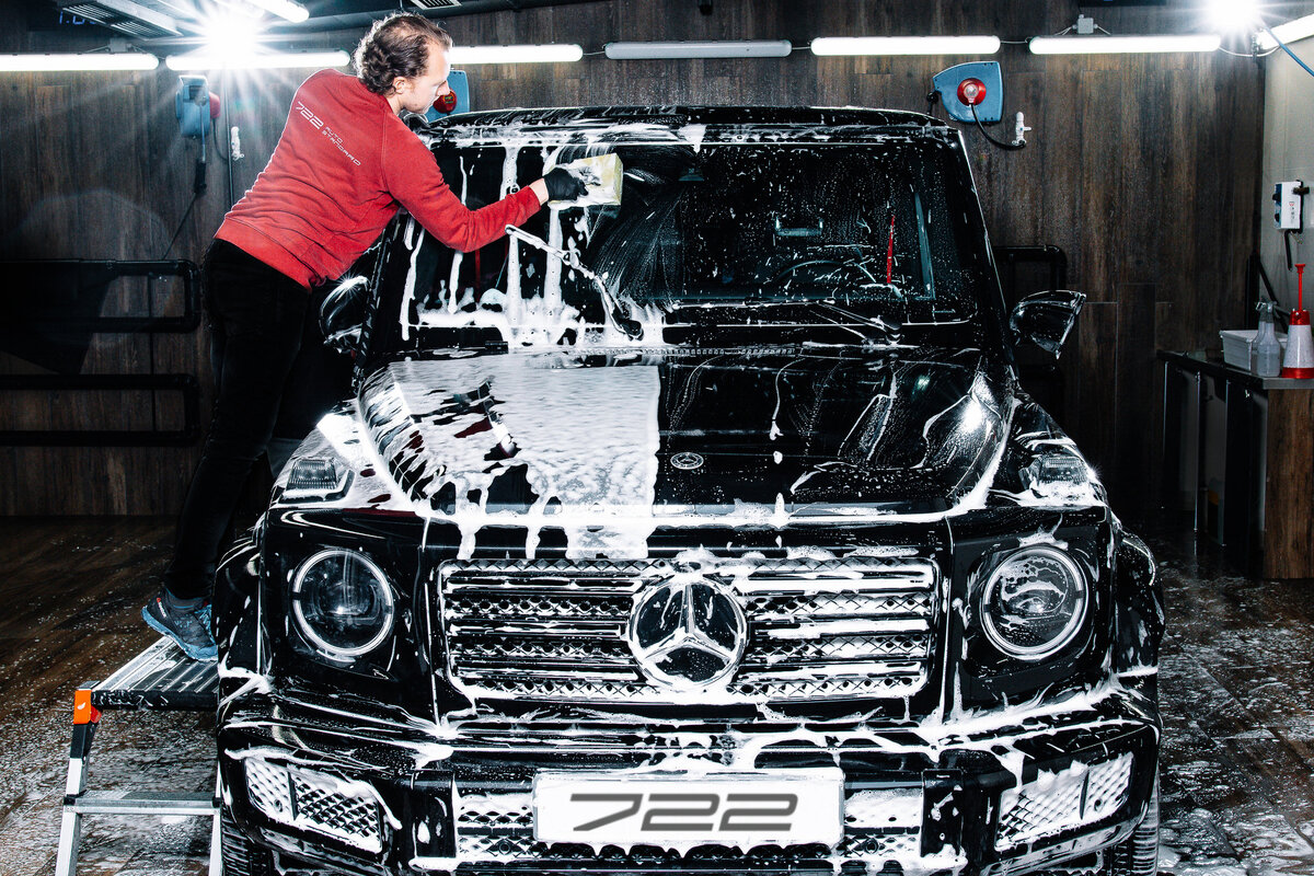 Первым делом осуществите трехфазную детейлинг мойку с удалением следов битума, насекомых и случайностей