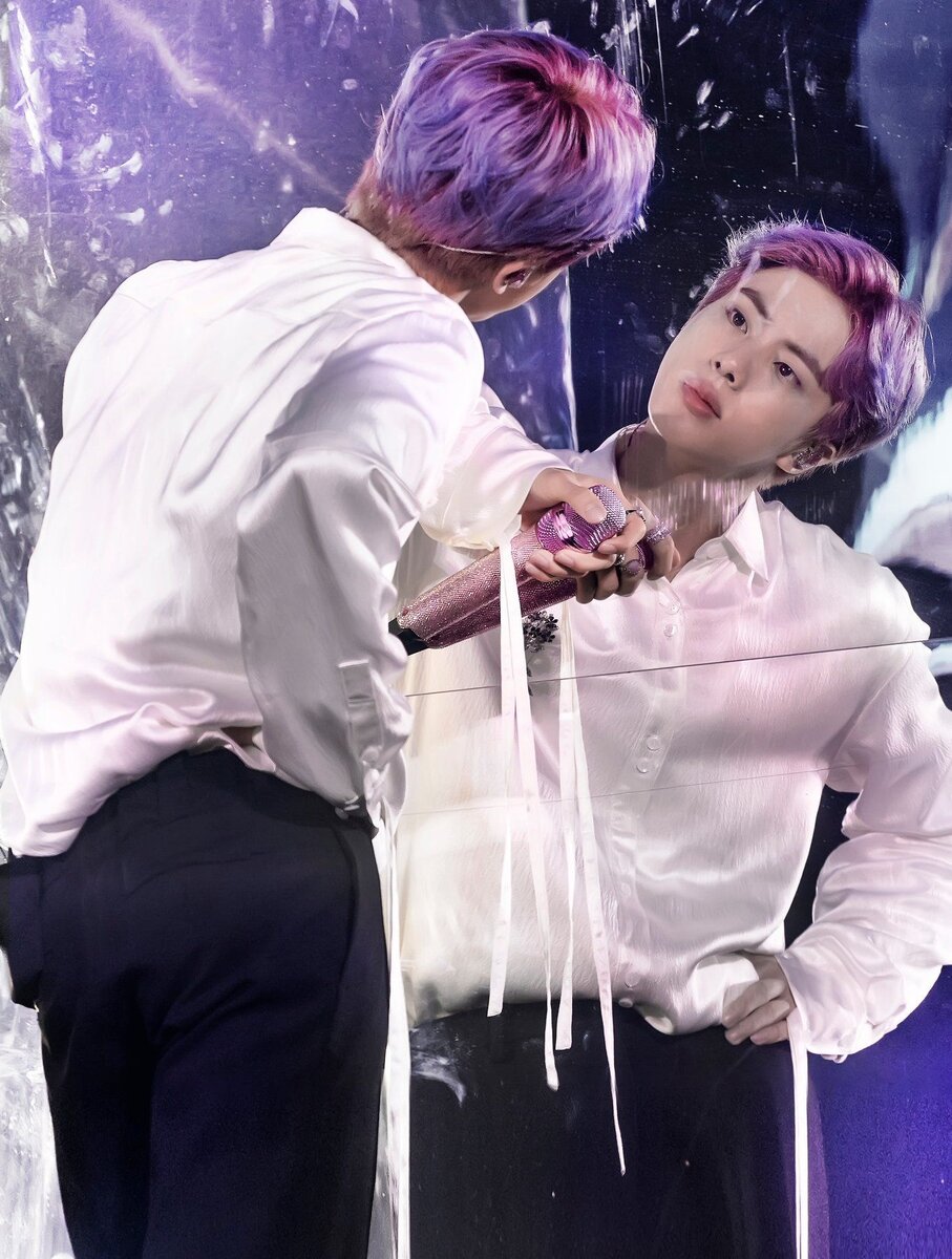 Ну, это всем известный факт: широкие плечи и совершенное лицо с симметричными чертами, которые в пластической хирургии называют "золотым сечением"! К тому же Джин совершенно не меняется со временем, не стареет, прям как Дориан Грей! А ещё у него у единственного во время исполнения песни 'Love maze' [на заглавном фото] не искажается отражение в зеркале, в отличие от других мемберов!