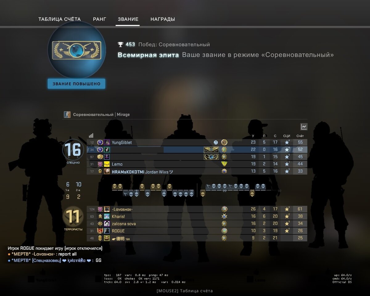 Один из самых популярных онлайн шутеров современности с множеством фанатов по всему миру игра counter-strike global offensive, в этой статье пойдет речь о получении максимального звания в рейтинговом подборе игр, а именно звания global elite. Я напишу небольшую серию статей в которых расскажу, как быстрее всего достичь заветной цели. Да да, именно цели, для начала спросите себя зачем вам это звание, действительно ли оно вам нужно, если вы уверенны что хотите его получить, то поздравляю вас первый шаг пройден у вас есть цель. И вот вам несколько советов, первый найдите друга вашего уровня игры или на одно - два звания выше, что бы играть и тренироваться вместе, скачайте запись вашей последней игры и пересмотрите ее. Мне понадобилось 453 игры что бы получить это звание, и я решил помочь другим его получить. Завтра будет следующая статья с более важными советами. Подписывайтесь на блог.