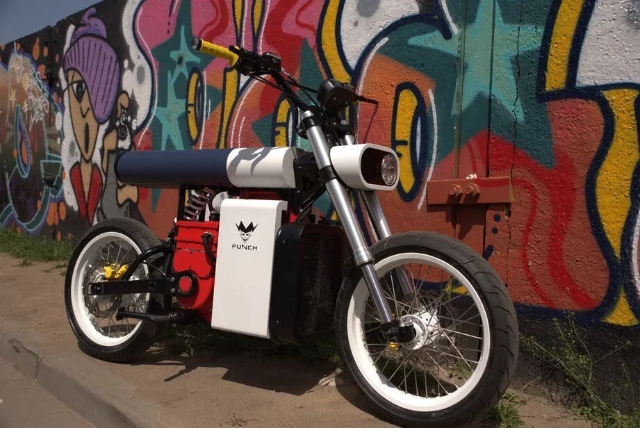 Идеология нового российско-белорусского стартапа Punch построена на отрицании "узких мест". Мотоцикл мерзко воняет, а на улице его не оставишь? Вот вам электропривод, позволяющий парковать машинку хоть в подъезде, хоть на балконе. Но где взять столько розеток? Два аккумулятора легко отстёгиваются, чтобы их можно было подзарядить дома. Задолбали ретро-мотивы? Но в дизайне Punch нет прямых заимствований, только следование в русле традиций - и прежде всего русского "супрематического" авангарда 20-х годов прошлого века. Пластмассовый мир победил? Нет, только натуральные материалы - сталь для рамы, алюминий для облицовок. Электродвигатель собственной разработки развивает мощность 11 кВт (15 л. с.), явно с прицелом на рамки европейского законодательства, но оригинальная система охлаждения позволяет форсировать его без потери надежности. Компания сообщает, что пока Punch ориентирован на европейский рынок, для российского и белорусского рынка этот продукт пока что будет не такой привлекательн