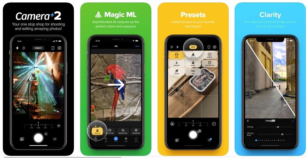 Наличие коллекции предустановок сцены для ваших фотографий - мечта как любителей, так и профессиональных фотографов. Приложение Camera + 2 предлагает такие сцены, как Портрет, Еда, Подсветка, Ночь, Тень и другие.