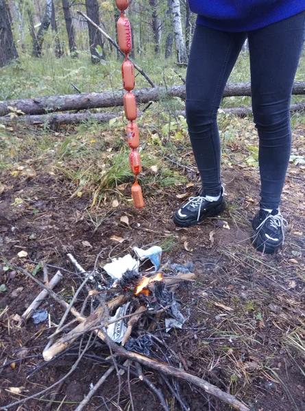 Первый раз в жизни развела костер в лесу с дочкой. Пожарили сосиски, маршмеллоу, сыр и хлеб