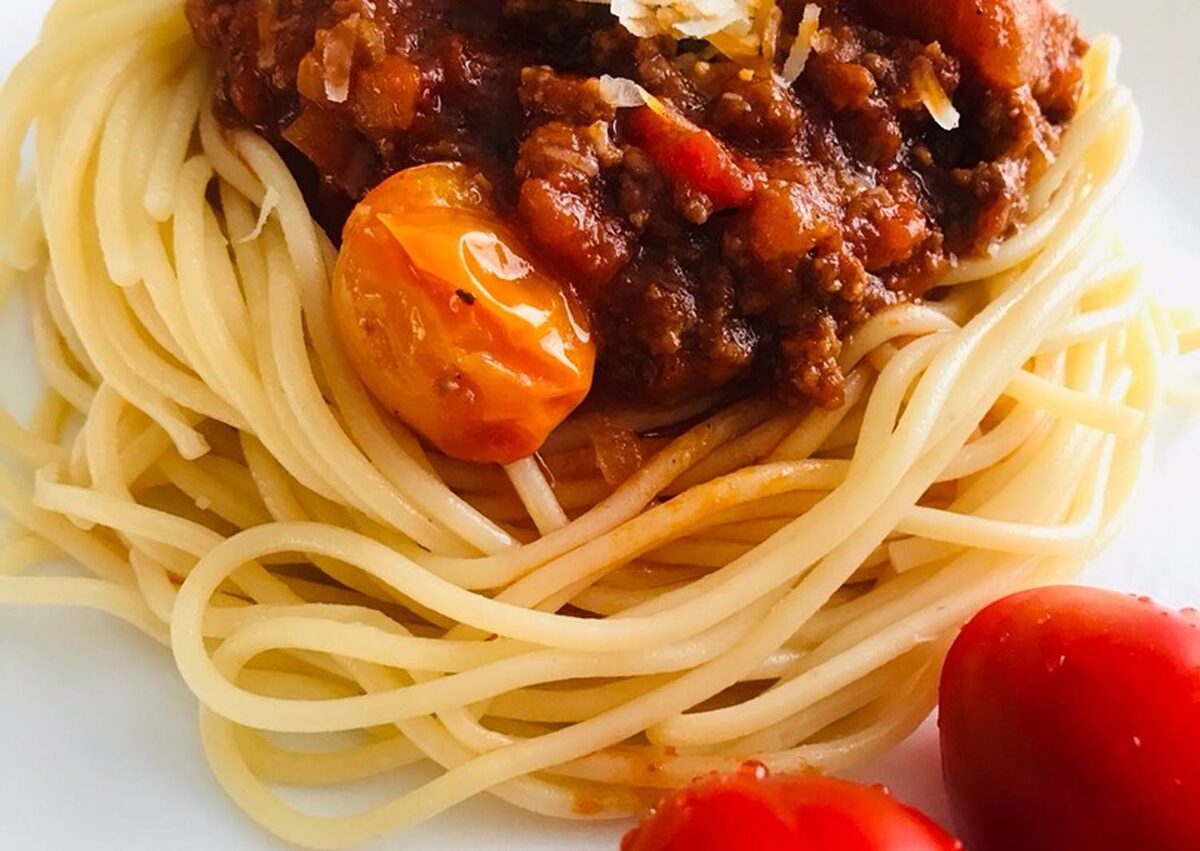 Ингредиенты Как приготовить Готовить 30 минут на мелком огне.В конце добавляем Черри и через 2 минуты все готово. На тарелку выкладываем спагетти,соус и сверху сыр через терку. Приятного аппетита!
