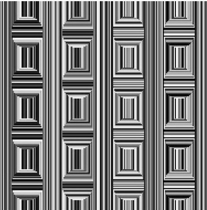 В этой оптической иллюзии вам нужно будет увидеть нечто скрытое за "визуальными помехами". В качестве помех здесь изображены многочисленные прямоугольники и их так много, что мозг обрабатывая изображение отдает приоритет именно им.